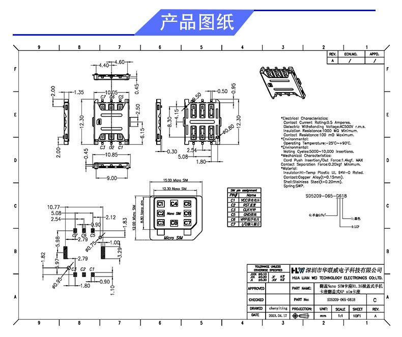 SIM 卡座H1.35(翻盖式6P )
