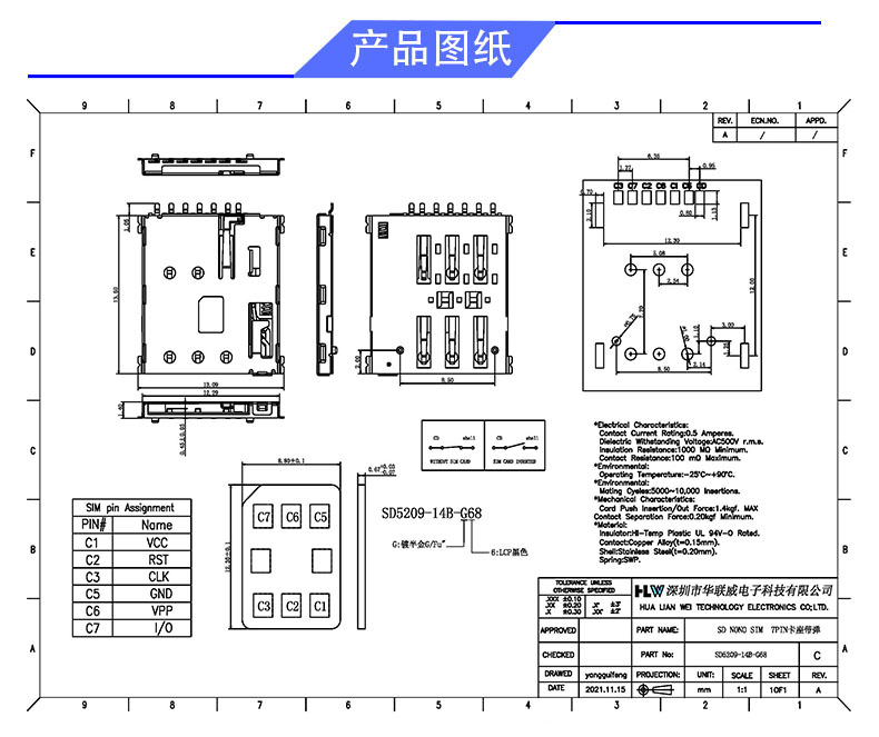 SD NANO 卡座(带弹7PIN)
