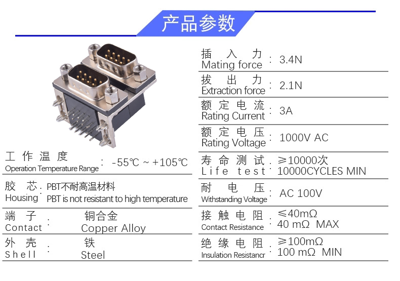 D-SUB 双层9P/M (高度15.88)