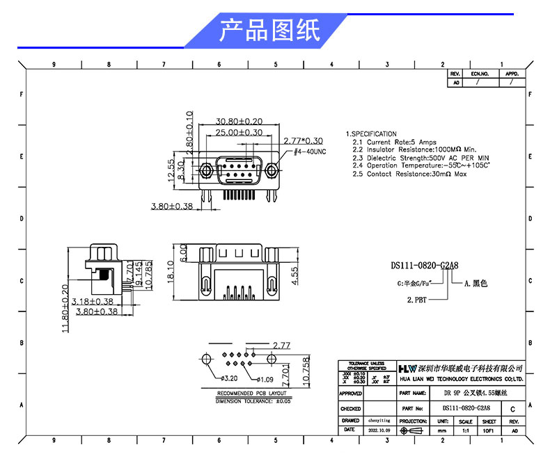 D-SUB 9P/M (卧式 )