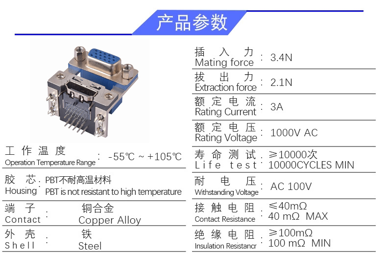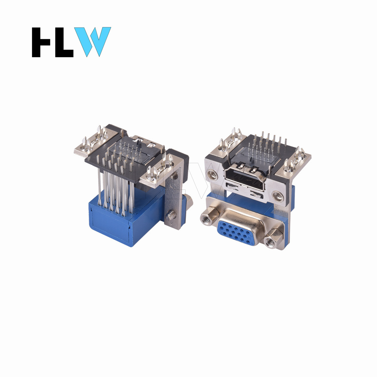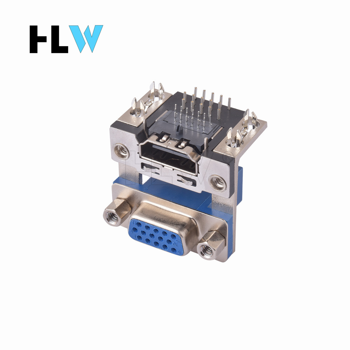 HDR15母+D-SUB HDR15/F 高度15.88 (铆锁卧式)