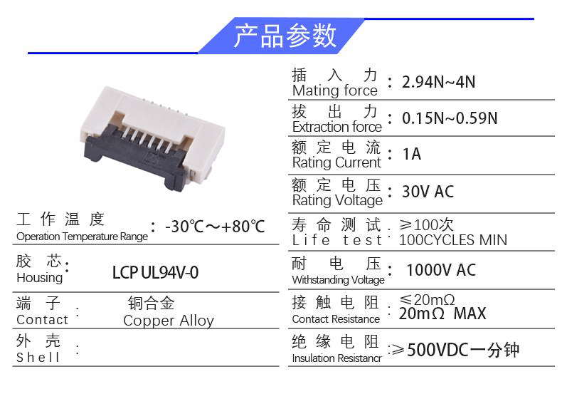 FPC 间距0.5翻盖式(高度1.1)
