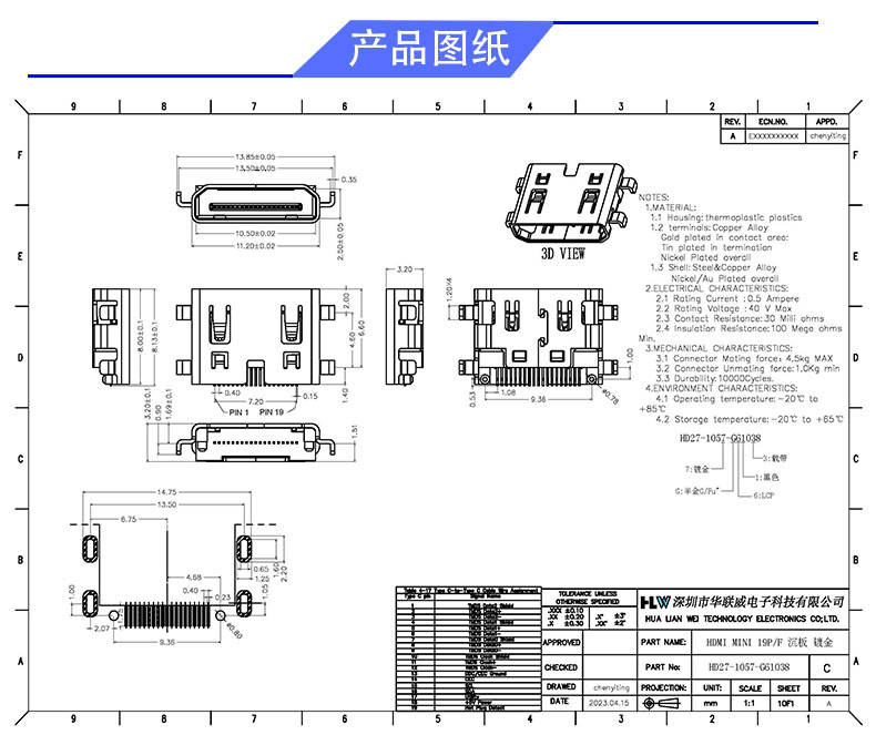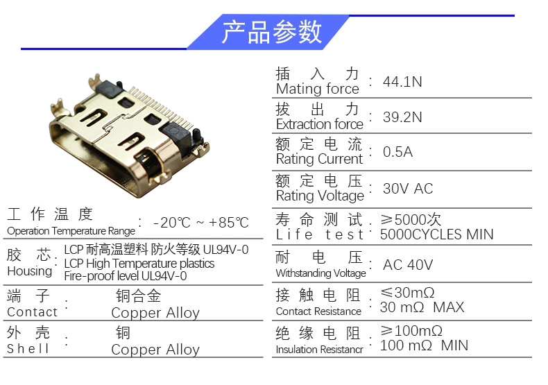 HDMI C TYPE 19P/F 沉板 (四脚插)