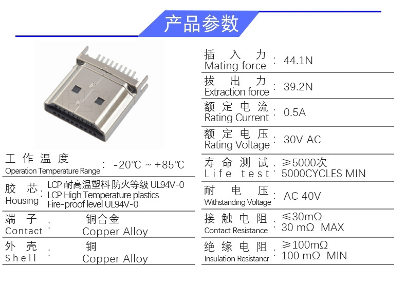 HDMI 19P公头(夹板1.2)