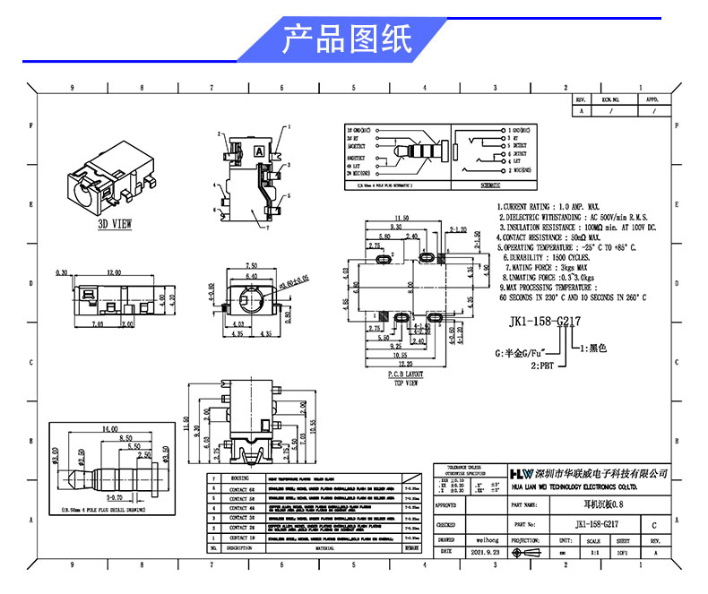 产品料号: JK1-158-G217