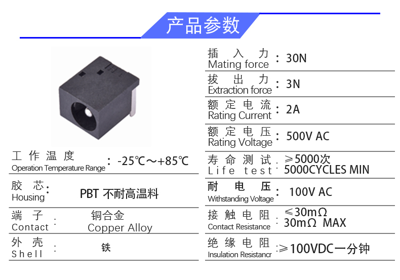 DC JACK (9.6X7.0X11.5)中轴2.0