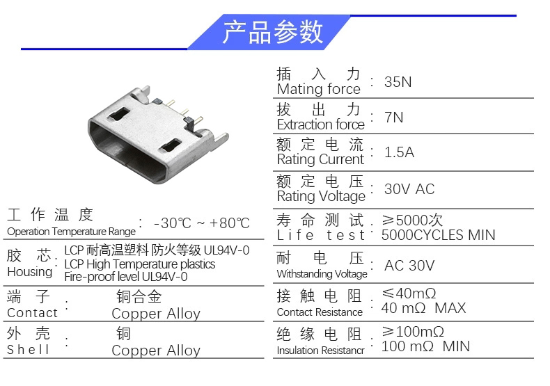 MICRO 5P/F B型 180度 (无卷边)