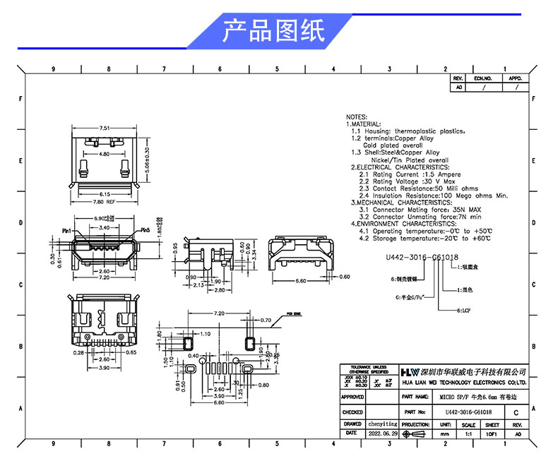 产品料号: U442-3016-G61018