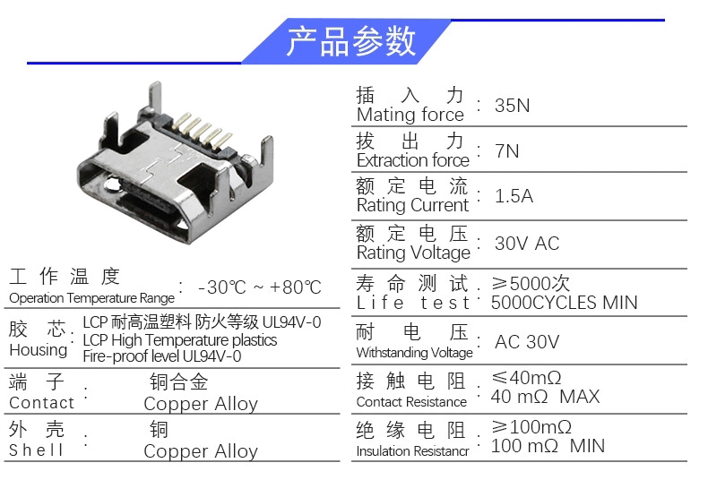 MICRO 5P/F B型 四脚无卷边(插脚7.2)