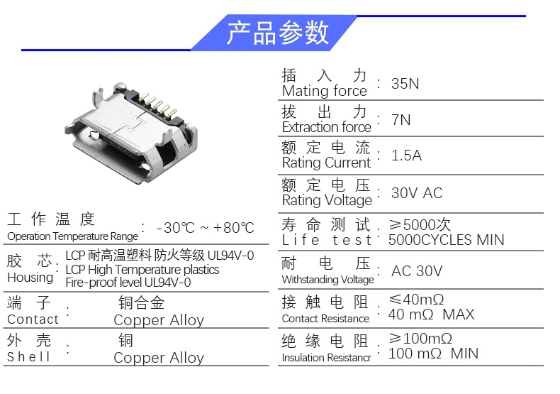 MICRO 5P/F B型 无柱 有卷边 (插脚6.4)