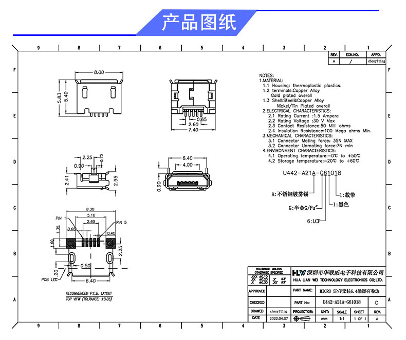 产品料号: U442-A21A-G61018