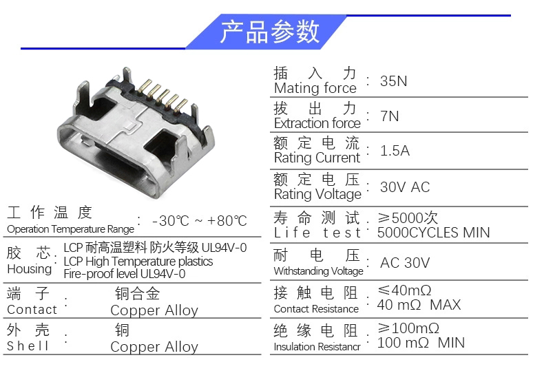 MICRO 5P/F B型 牛角 (无卷边)
