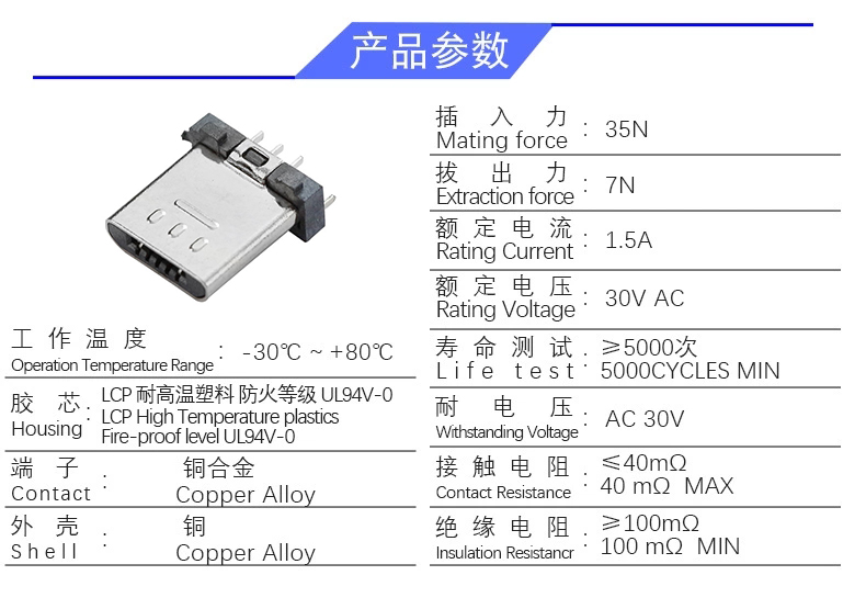 MICRO USB 180度夹板(公头)