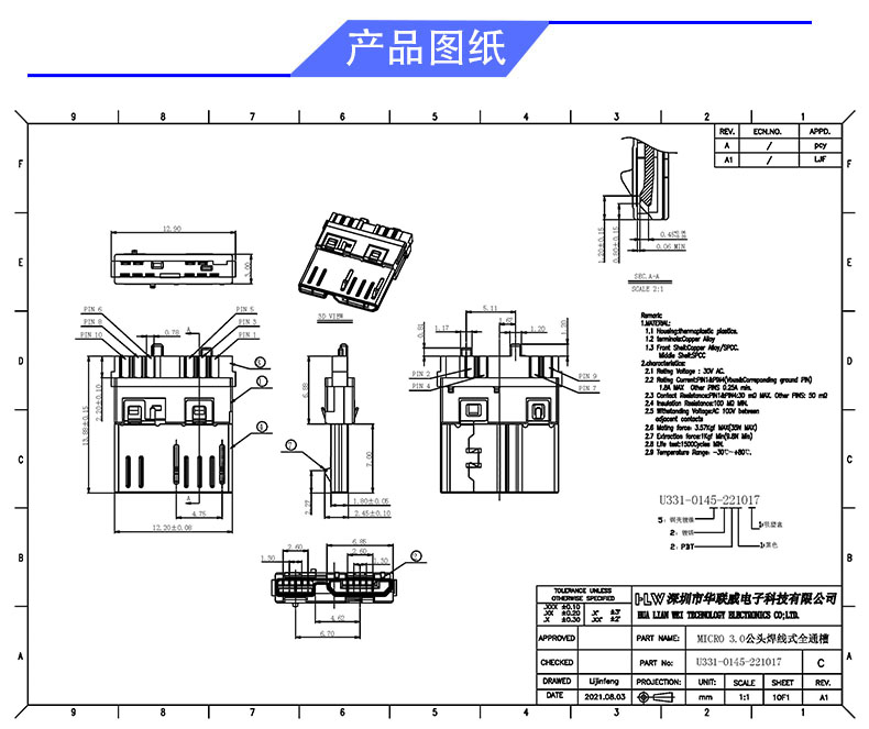 产品料号: U331-0145-221017