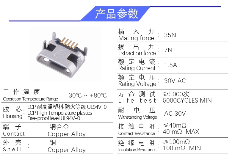 MICRO 5P/F 牛角无卷边(有柱6.6)