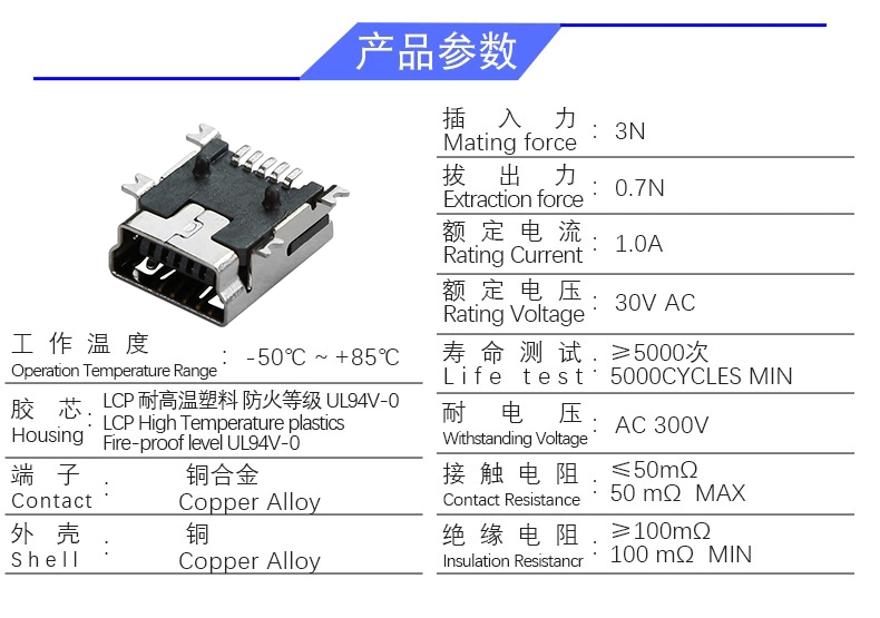 MINI 5P/F B型 SMT(0.3)