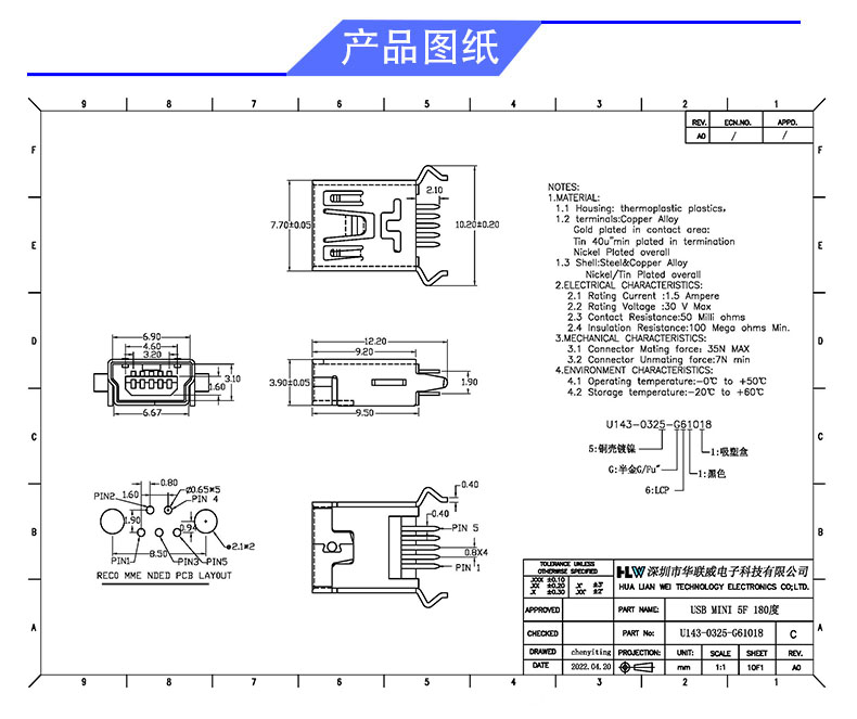 产品料号: U143-0325-G61018