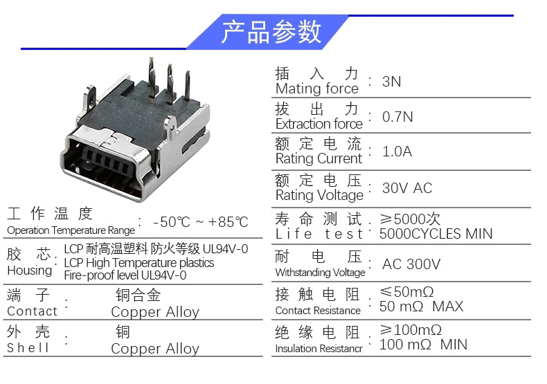 MINI 5P/F 90度(两脚 )