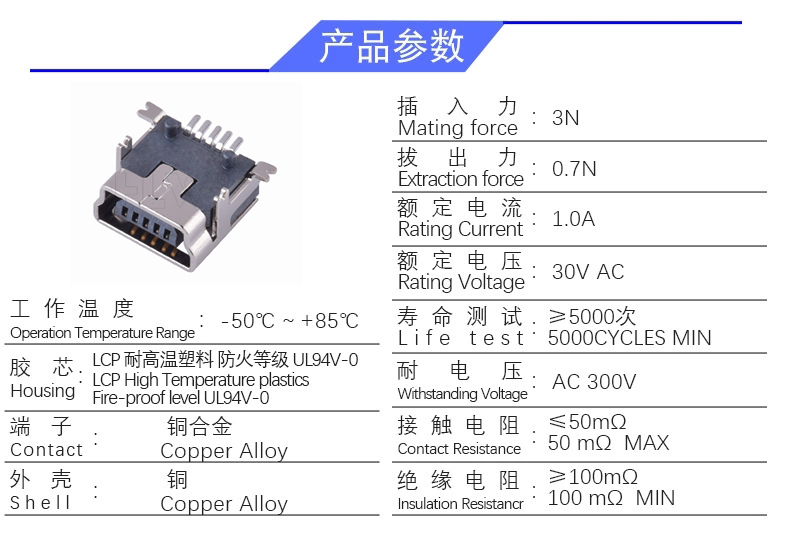 MINI 5P/F 短体(前贴后插)
