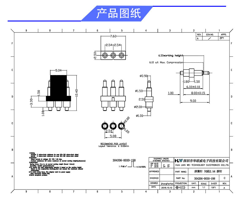 弹簧 间距2.54(探针)
