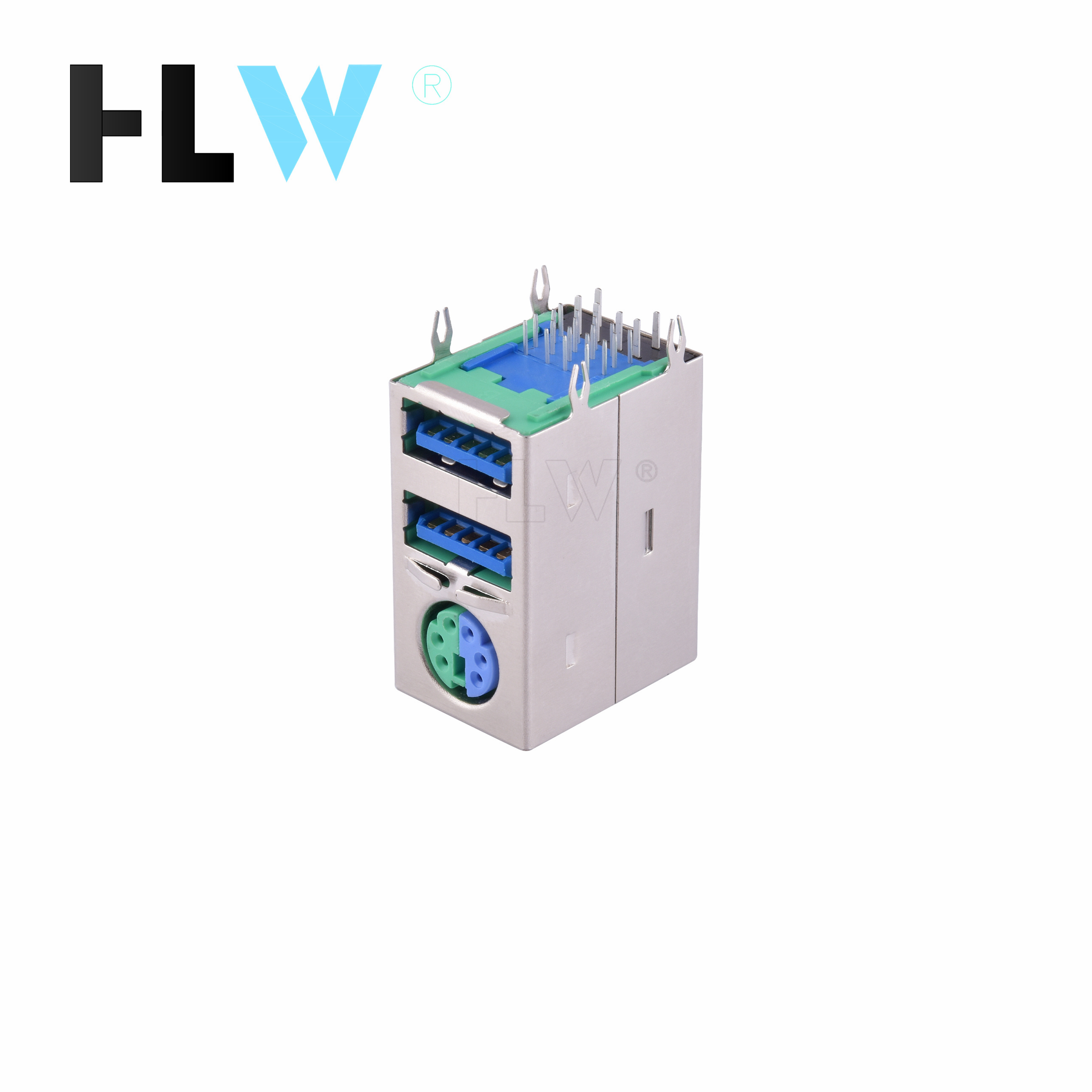 MINI 双层USB2.0+下MINI DIN(弯脚)