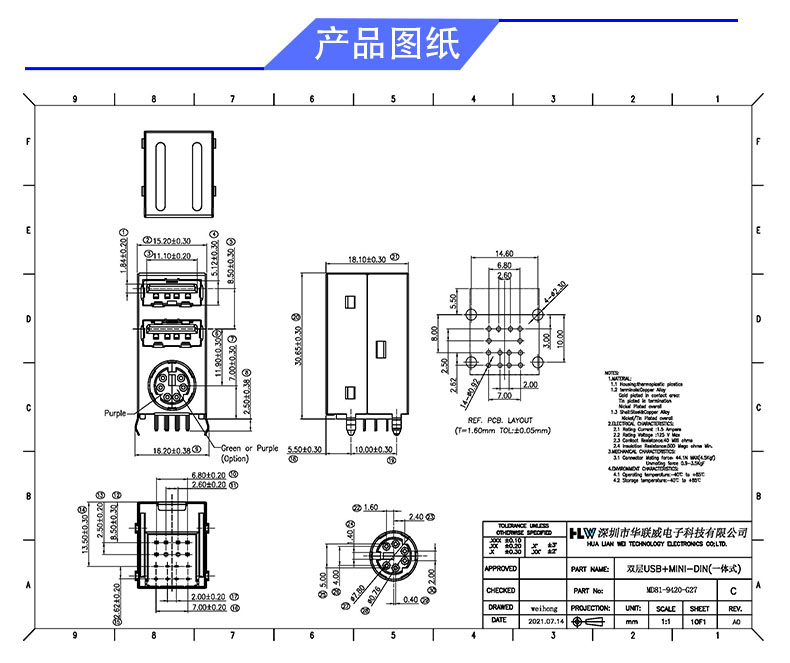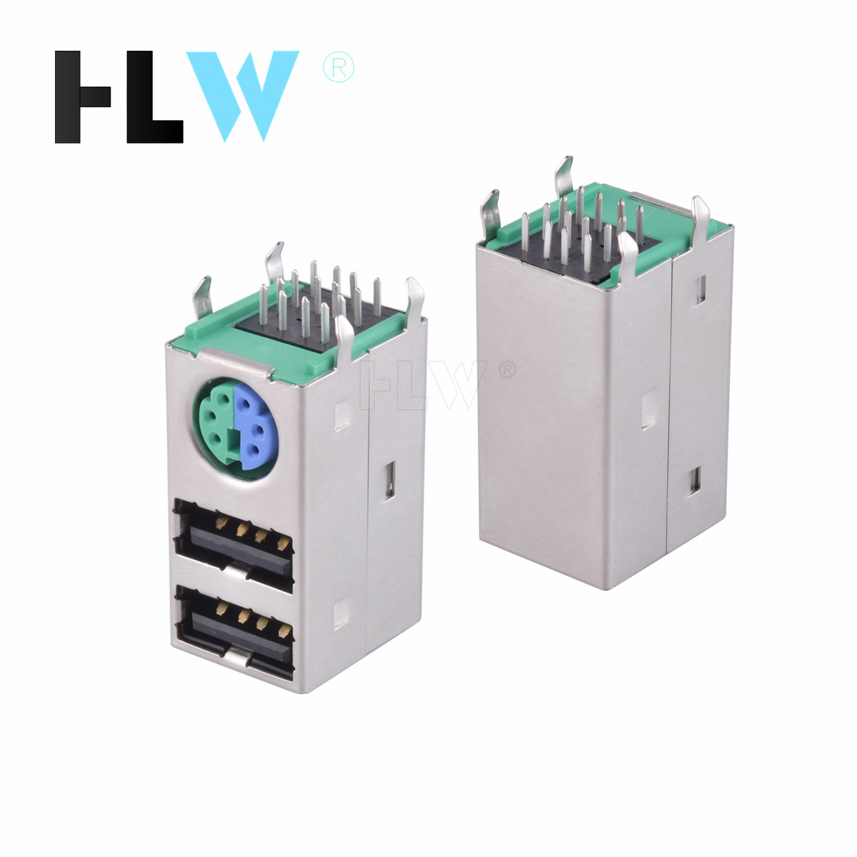 MINI 双层USB2.0+下MINI DIN(弯脚)