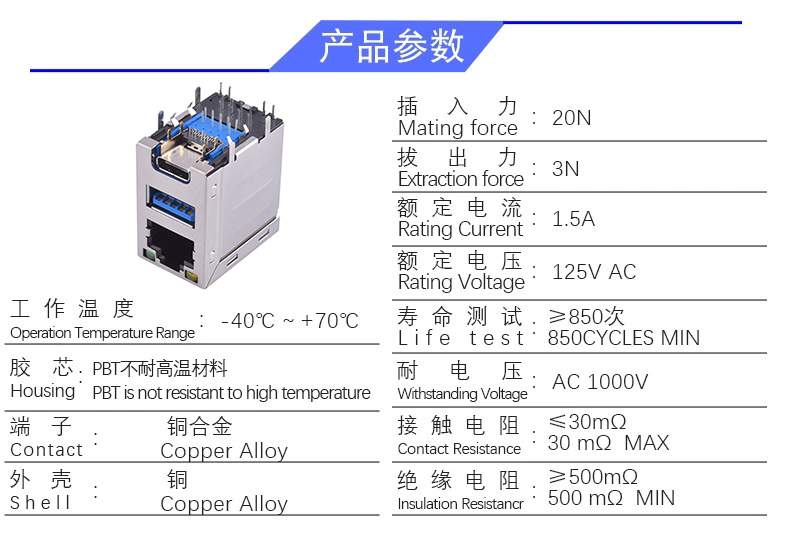 RJ45 +单层3.0 +TYPE C (带LED灯)