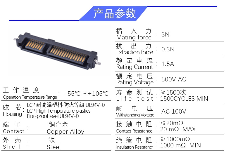 SATA 7+15P 公座SMT(高度2.0)