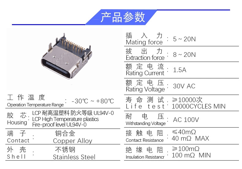 TYPE C 24P/F DIP+SMT 板上双壳(六脚插)