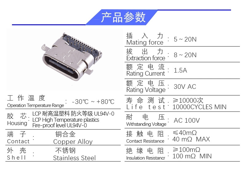 TYPE C 24P/F 沉板双壳半插半贴(短款)