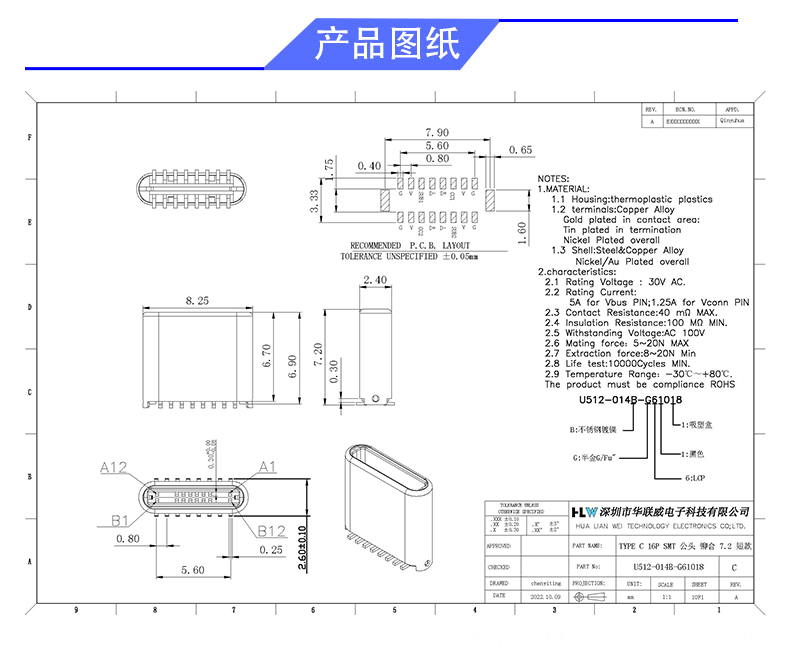 TYPE C 16P SMT 180度立贴(H=7.2)