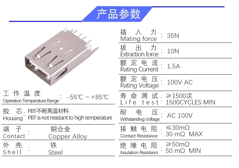 USB AF 180度直插20.5直脚(无卷边)