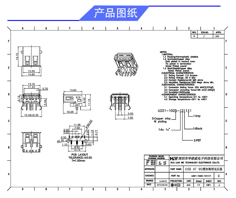 产品料号: U221-1025-121111