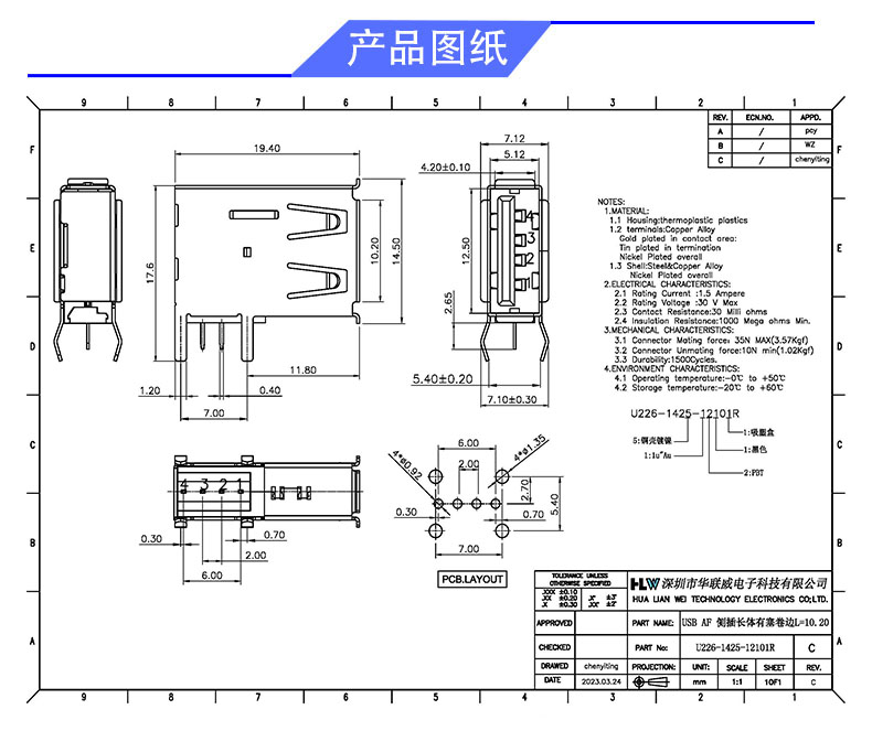 USB AF 侧插长体有塞(卷边10.20)
