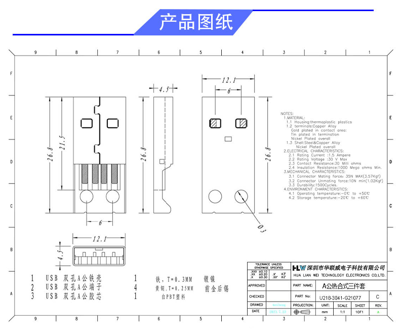 产品料号: U218-3041-G21077