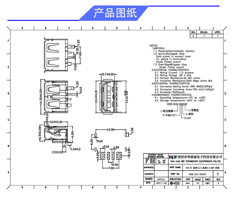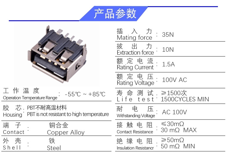 USB AF 短体长度10.0 高度6.8 (大电流 )