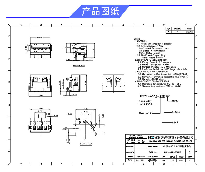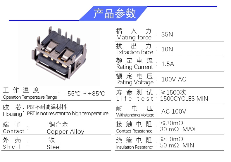 USB AF 短体长度10.0 高度6.5 (大电流 )