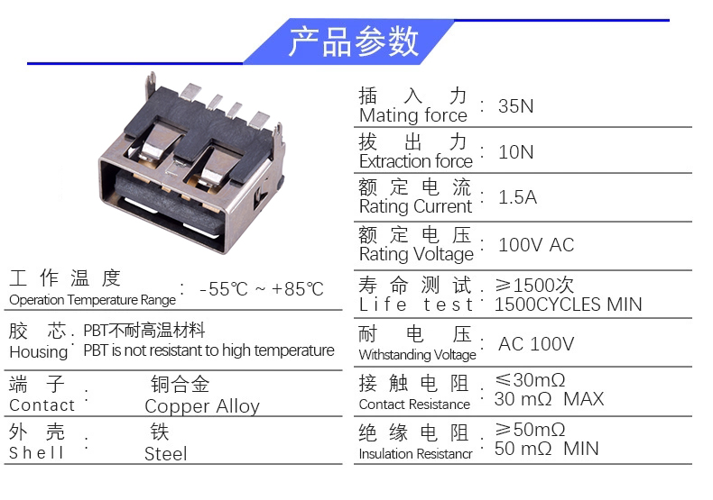USB AF 短体长度10.0 无卷边(大电流 )