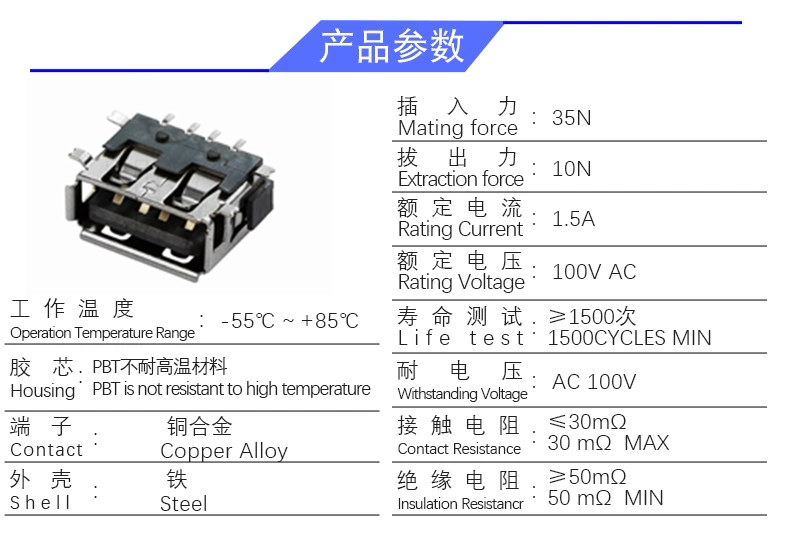 USB AF 短体10.0 全贴片 (高度6.3 )
