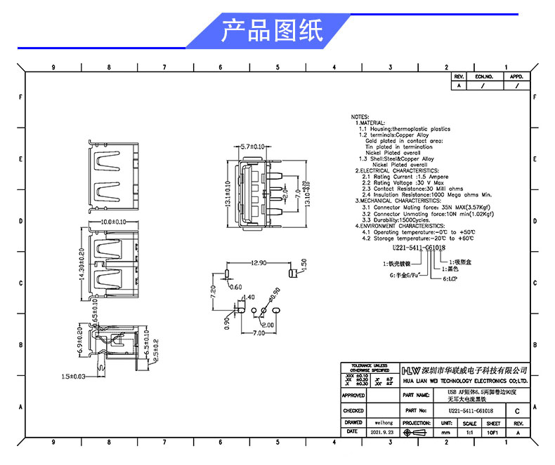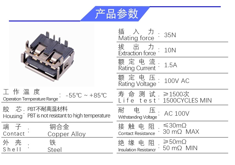 USB AF 短体长度10.0 高度6.5 (大电流 )