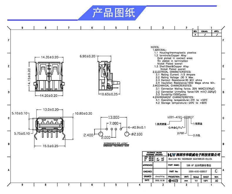 USB AF 弯脚有盖有卷边(反向)