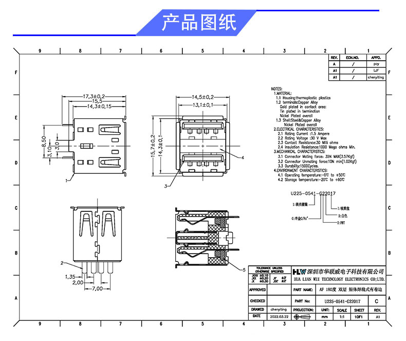 产品料号: U225-0541-G22017