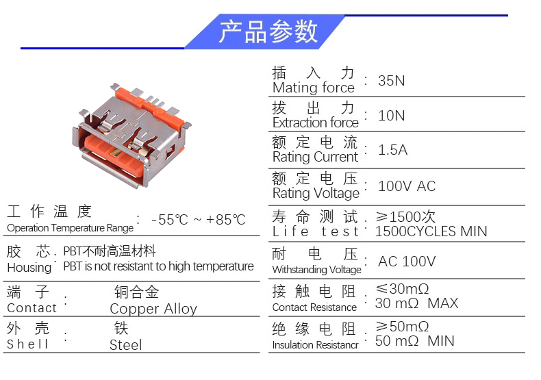 USB AF 短体5P 四脚全贴(大电流)