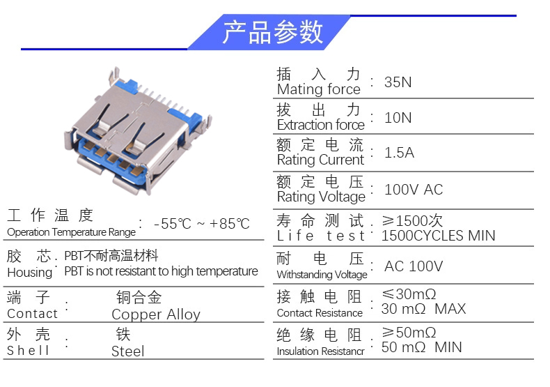 USB 3.0AF 沉板 SMT (鱼叉脚)