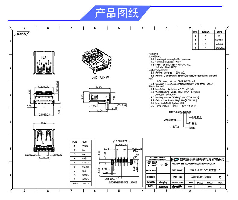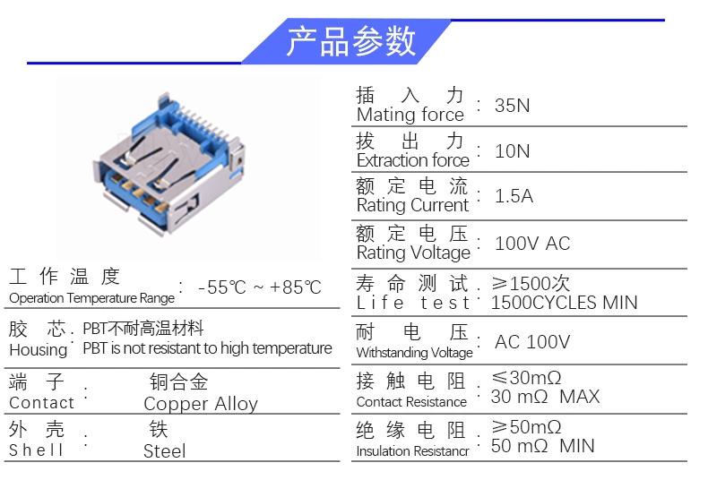 USB 3.0 AF SMT (短直脚1.6)