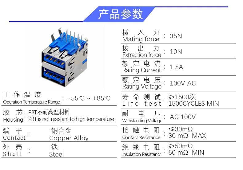USB 3.0AF 90度双层短体 (无卷边)