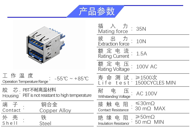 USB 3.0AF双层180度 (焊线)