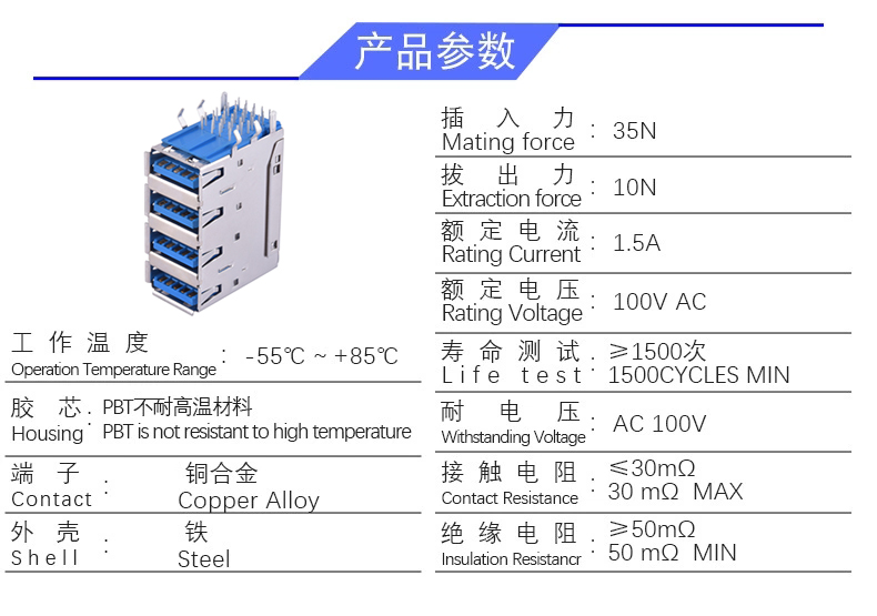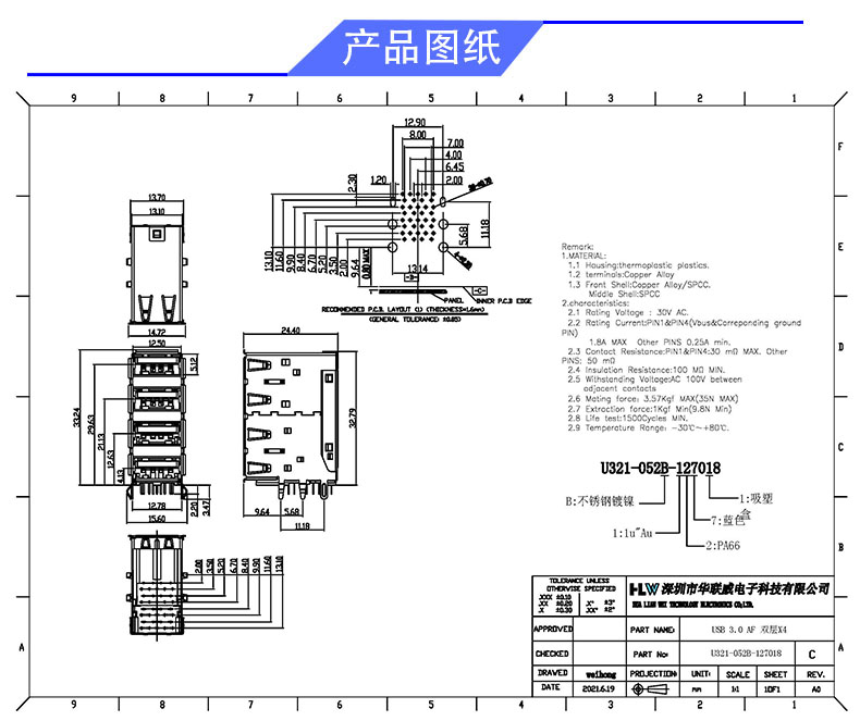 USB 3.0 AF 90度四层结构 (有卷边)