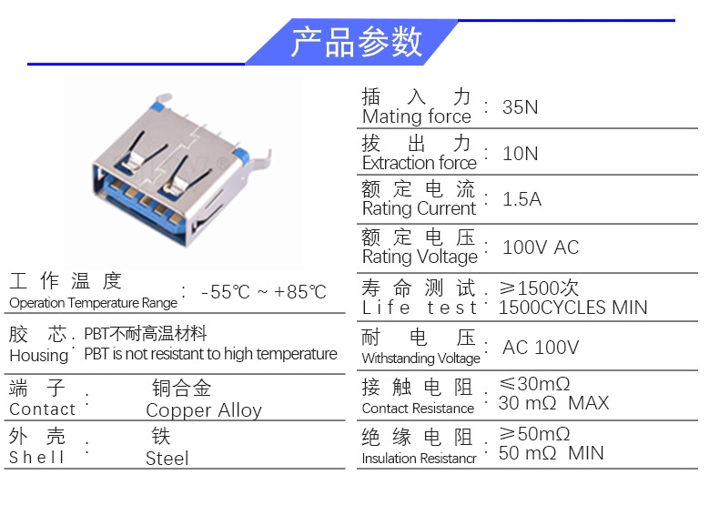 USB 3.0 AF 180度 直插11.5 ( 无卷边)