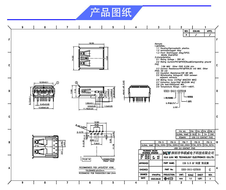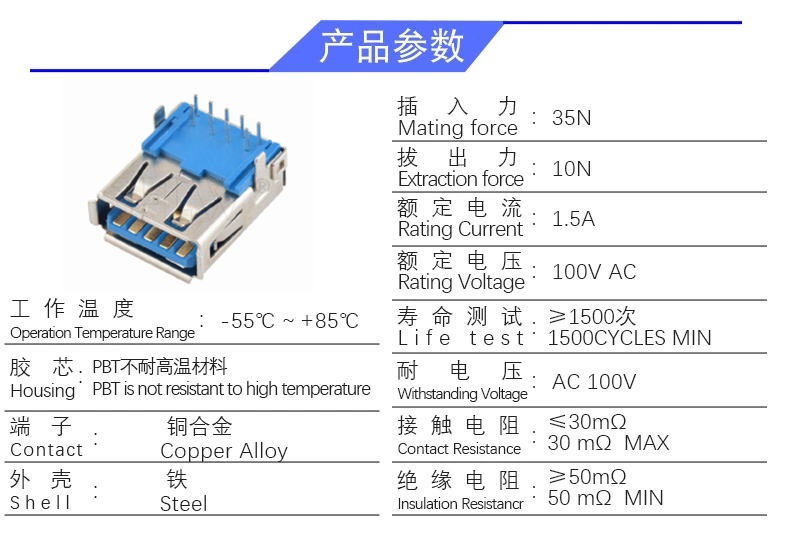 USB 3.0 AF 90度 短直脚 (有卷边 )